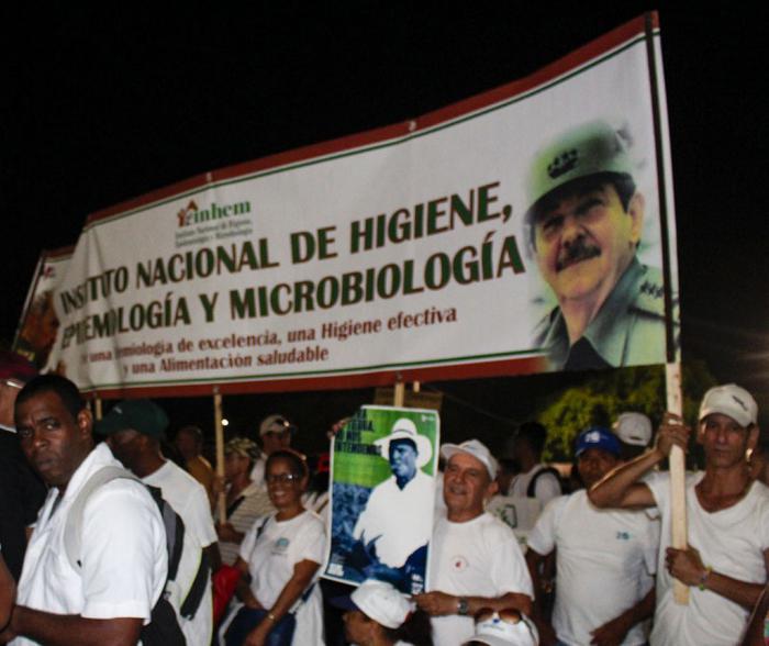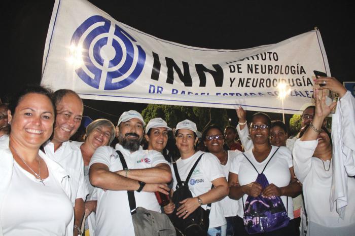 Ellos enfrentan el dolor y pueden mitigarlo con una sonrisa. Esta madrugada tiene un significado diferente, mujeres y hombres de la salud pública cubana marchan en cuadro apretado en la histórica Plaza de la Revolución.