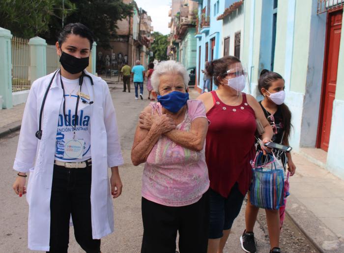 Andando por La Habana Vieja visitamos varios Consultorios del Médico de la Familia (CMF) del Consejo Popular (CP) San Isidro, todos remozados y revitalizados para la intervención sanitaria. En ellos nos encontramos a ancianitas como Concha, que a sus 83 años puso el brazo en el CMF 2 para protegerse ella y su familia de esta pandemia. Concha con su vitalidad y memoria prodigiosa dicta su número de identidad y hasta demuestra que puede bailar hasta el piso con la sandunga que solo puede exhibir una cubana de pura sangre.