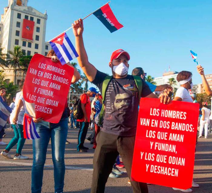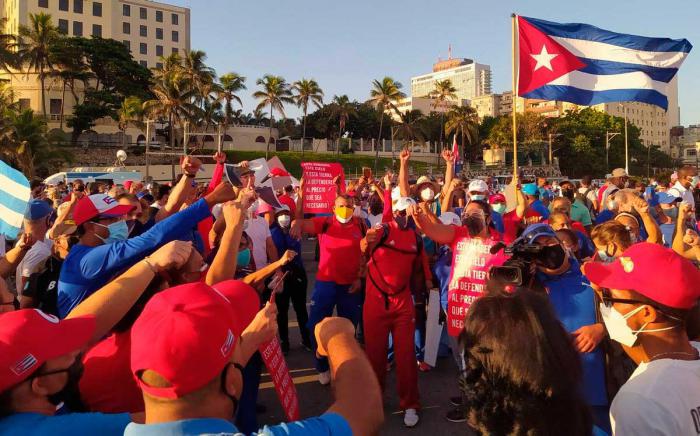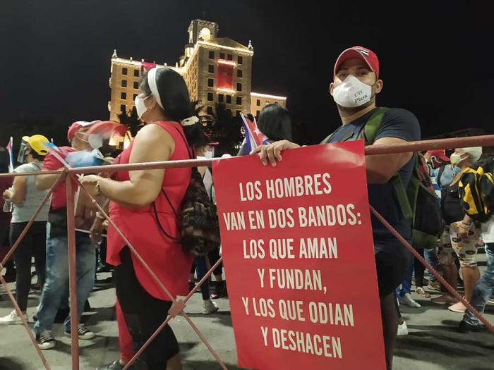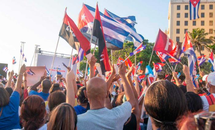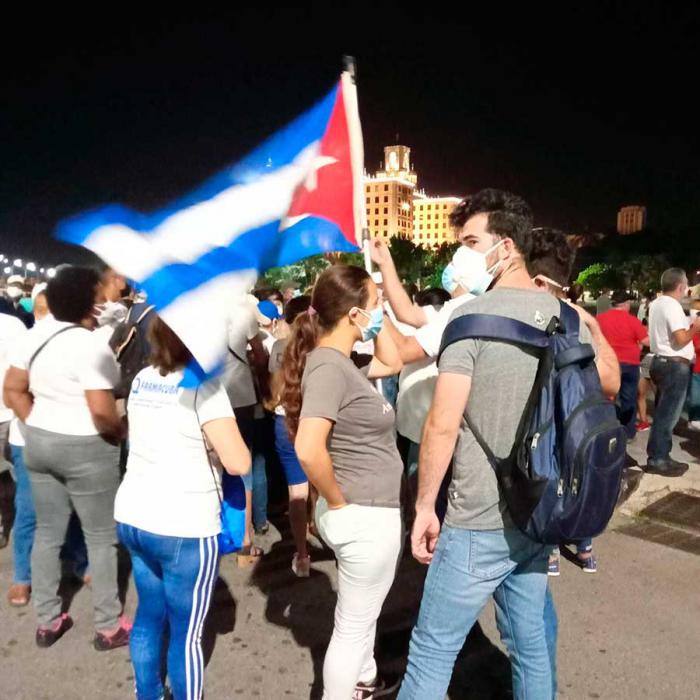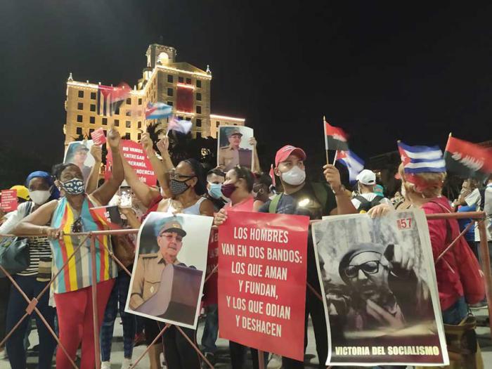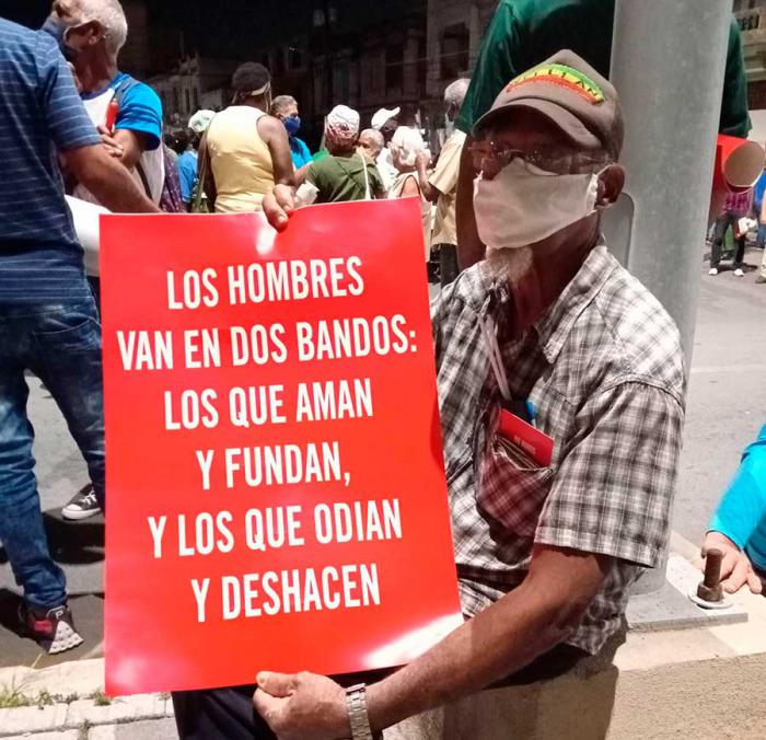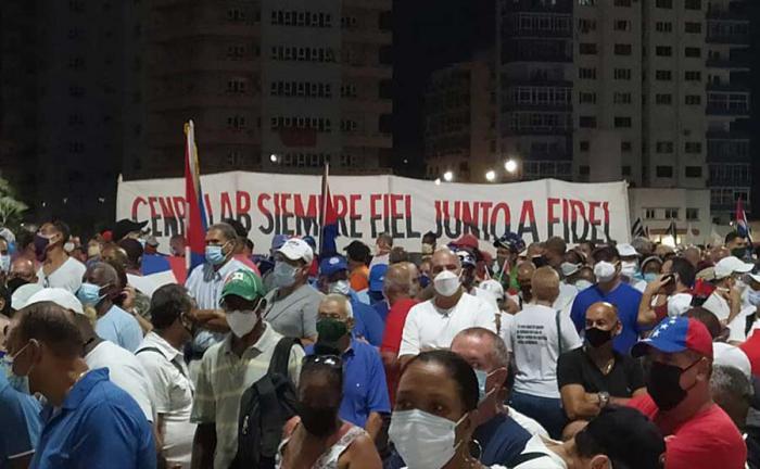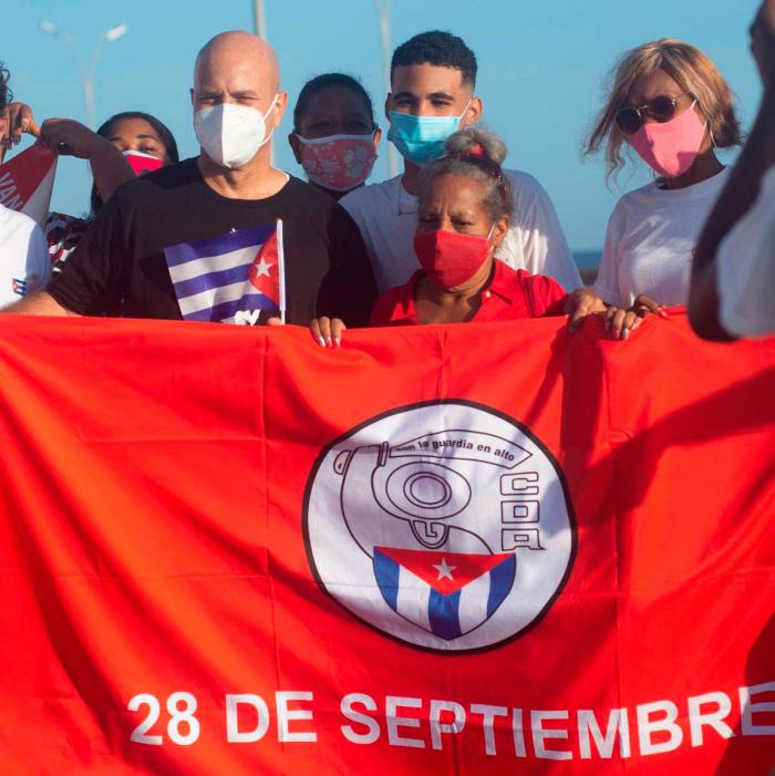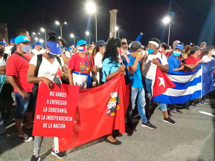 No es por capricho que nos reunimos aquí esta mañana, puntualizó. En medio de una compleja situación epidemiológica, respetando en la medida de lo posible las medidas sanitarias y de distanciamiento físico, los hemos convocado para denunciar una vez más el bloqueo, la agresión y el terror. No podíamos dilatar este encuentro, el enemigo ha vuelto a lanzarse con todo para destruir la sagrada unidad y la tranquilidad ciudadana. "Ratificamos que Cuba es de todos".