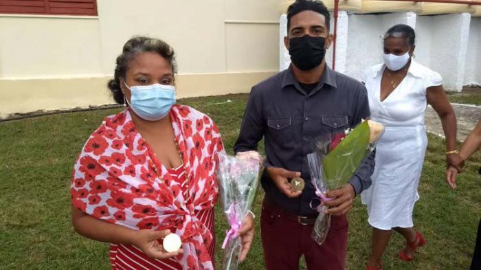 Asimismo, y en sincero homenaje y agradecimiento a quienes en el enfrentamiento a la COVID-19 han luchado por la vida, enfrentando cualquier obstáculo, Yolanda Benítez Nova, perteneciente al centro mixto Ramón López Peña, y Eduardo Antonio Mc Intosh García, profesor de la Secundaría Básica Antonio Maceo, recibieron el sello “Valientes Por la Vida” de manos de Ana Rosa Granda, primera secretaria de la UJC en la provincia, quien tuvo a su cargo las palabras centrales del acto.