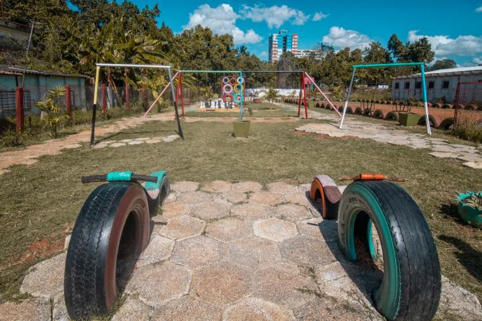 Este fue el primer punto de un periplo, que también comprendió el parque y la bodega, aledaños a la instalación. El primero ya presta servicios equipados con columpios, cachumbambés y otros equipos infantiles, y cuenta asimismo con áreas para la práctica de baloncesto, futbol, y un ajedrez con superfichas, cuyo tablero está dibujado en el piso, lo cual hace de la instalación un sitio ideal para el disfrute de fiñes, jóvenes y otros que no lo sean tanto.