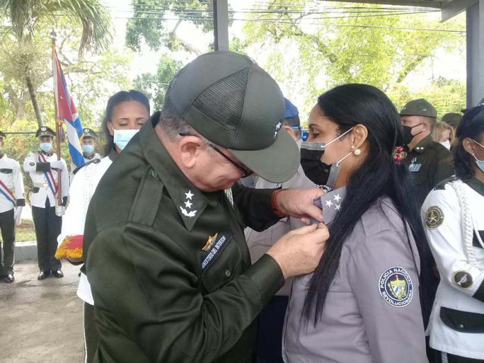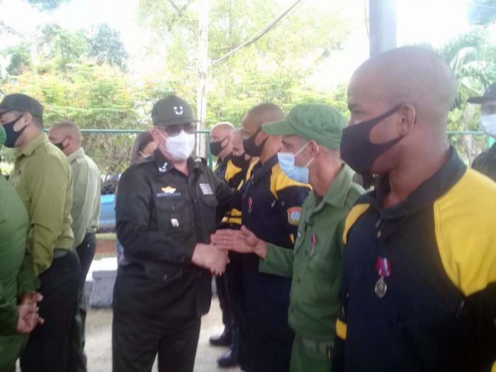 El miembro del Buró Político del Comité Central del Partido Comunista de Cuba y Ministro del Interior, General de División Lázaro Alberto Álvarez Casas, junto a los miembros del Comité Central Idalis Rodríguez, segunda secretaria de la Central de Trabajadores de Cuba ( CTC), y Aylin Álvarez García, primera secretaria del Comité Nacional de la Unión de Jóvenes Comunistas (UJC) presidieron el homenaje que tuvo por sede la Escuela de Bomberos.