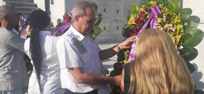 Encabezaron el homenaje, los miembros del Secretariado del CC PCC Yudi Mercedes Rodríguez Hernández y José Luis Broche Lorenzo; los integrantes del CC PCC Luis Antonio Torres Iríbar, Yanet Hernández Pérez y Eduardo Rodríguez Davila, primer secretario del Partido en la capital, Gobernadora de La Habana y ministro de Transporte, respectivamente.