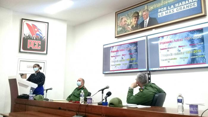 En la reunión, la máster en Ciencias Ailyn Caridad Justiz Águila dio una información acerca de pronósticos de comportamiento de la próxima temporada, en la que los ciclones tropicales constituyen el evento hidrometeorológico extremo de mayor peligro.