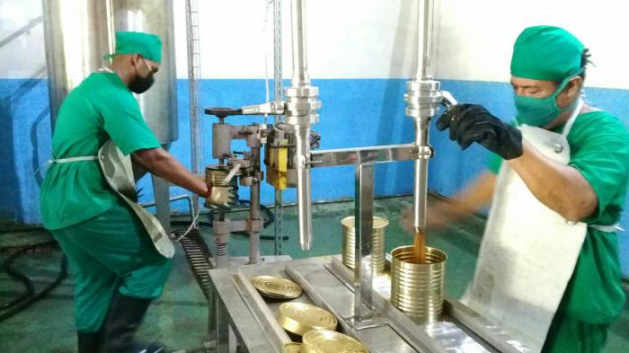 Mermeladas, dulces y paquetes de renglones para elaborar caldosa se incluyen entre los surtidos destinados a varias formas de comercialización y que recibieron la visita de Luis Antonio Torres Iríbar y Reinaldo García Zapata, primer secretario del Partido y Gobernador, respectivamente, de la ciudad.