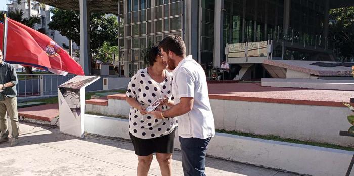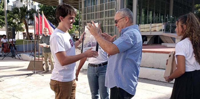 Posteriormente Torres Iríbar y Daniel Medina abanderaron a la delegación de la capital, la cual fue recibida por Ana Ailin Castillo Padilla, coordinadora de la FEU en La Habana y presidenta de esa organización en el Instituto Superior de Relaciones Internacionales.