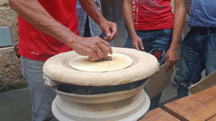 A su vez, en un burén -plancha, generalmente de barro cocido, que se utiliza para cocinar el casabe-, sobre carbón, Blanco mostró el proceso de cocido de las tortas de casabe y las rellenó con diferentes ingredientes, entre ellos, guayaba natural, conserva de guayaba, huevo y queso blanco.