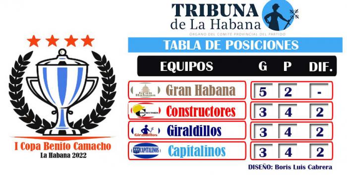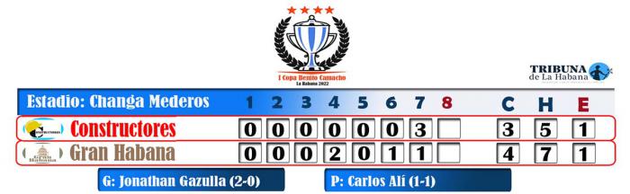 Un hit de oro de Walter Abreu en el último capítulo, sirvió para que los líderes de Gran Habana dejaran tendidos en el césped del estadio capitalino Changa Mederos a Constructores con pizarra final de 4-3, y tomara ventaja de dos juegos en el primer lugar, en el cierre de la segunda semana de enfrentamientos de la Copa Benito Camacho.