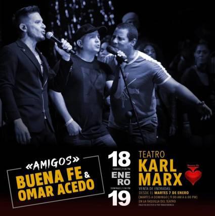 Buena Fe, junto al músico, cantante y compositor venezolano Omar Acedo, ofrecerá conciertos en el Teatro Karl Marx los días 18 y 19 de enero, informó recientemente la propia agrupación cubana.