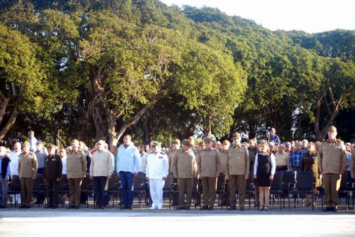 El miembro del Buro Político general de cuerpo de ejército Álvaro López Miera, Viceministro primero de las Fuerzas Armadas Revolucionarias y Jefe del Estado Mayor General, Jorge Cuevas Ramos, integrante del secretariado del Comité Central , y Luis Antonio Torres Iribar, primer secretario del Comité Provincial del Partido en la Habana presidieron la conmemoración.