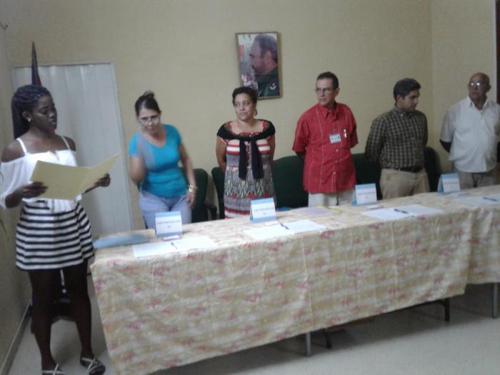 En la Comisión Electoral Municipal del capitalino municipio La Lisa se realizó la toma de posesión de los integrantes de las Comisiones Electorales de Circunscripción del Consejo Popular San Agustin,cuya ceremonia contó con la asistencia de Amelia Mendoza Rodríguez , integrante del Buró Municipal del Partido en la localidad, y Roberto Alejandro Cárdenas Santos , presidente de la Comisión Electoral Provincial de la Habana.