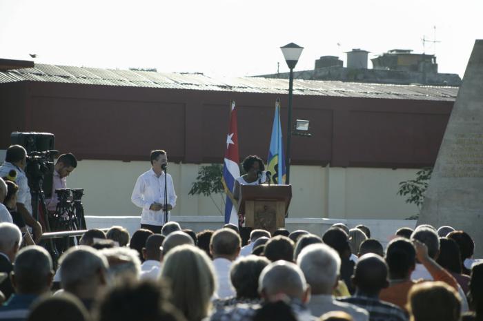Más adelante reconoció el gesto de la ínsula para erigir este monumento, algo mucho más honorable si se tiene en cuenta la escasez de recursos de Cuba, “que se empeora con el fuerte bloqueo impuesto por Estados Unidos”, dijo, luego de declarar cuánto se inspiran los países del área en el ejemplo de la Revolución cubana.