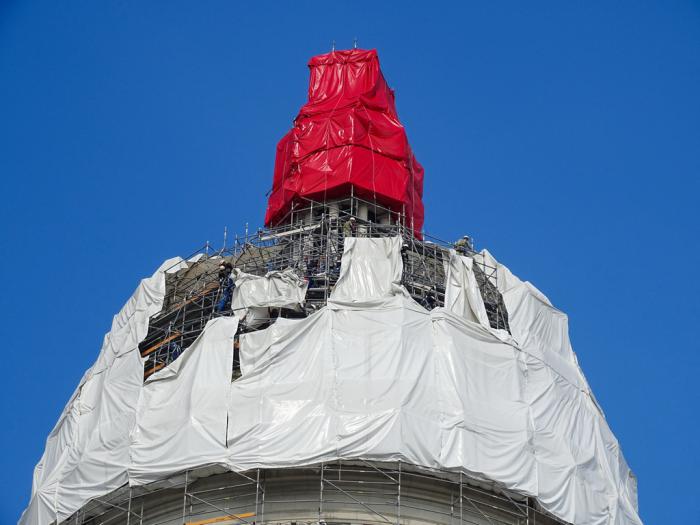 Para el conocimiento de los habaneros, Leal, también Premio Nacional de Ciencias Sociales, comentó sobre las funciones desempeñadas por las lonas que han estado cubriendo la cúpula y que en horas de la mañana comenzaron a descender: proteger, en cumplimiento con las medidas de seguridad, los trabajos de restauración, resguardar a los obreros y especialistas involucrados del deslumbramiento que podría causar la luz del sol sobre las planchas de metal y oro y asegurar el clima propicio para las labores, realizadas a más de 90 metros sobre el nivel de la calle.
