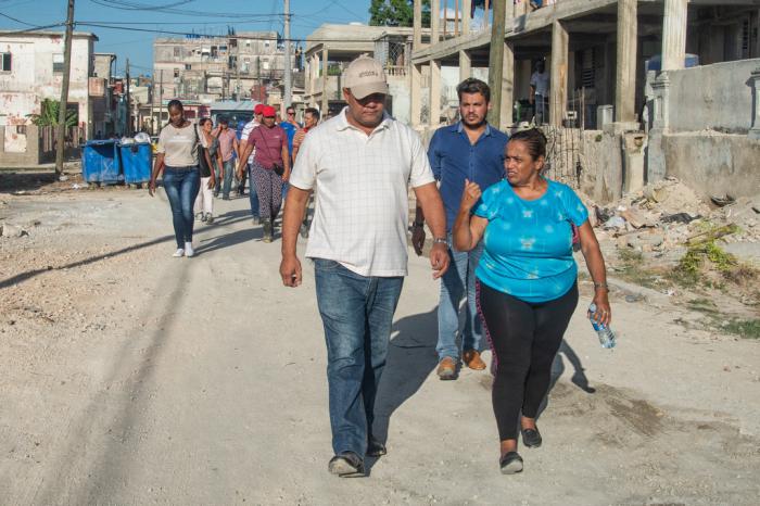 En Diez de Octubre se ensañó la fuerza del meteoro, concentrando las mayores afectaciones en el área que ocupan los consejos populares Jesús del Monte, Luyanó, y una parte de Tamarindo. Este domingo, el presidente del Gobierno en La Habana Reynaldo García Zapata, acompañado de las autoridades del municipio y de otros organismos e instituciones, apreció el quehacer de las diferentes brigadas, las que recibieron el apoyo de otras fuerzas del sector en jornada de trabajo voluntario. Mientras caminaba la zona no le faltó el minuto para escuchar a quien se acercó con alguna inquietud.