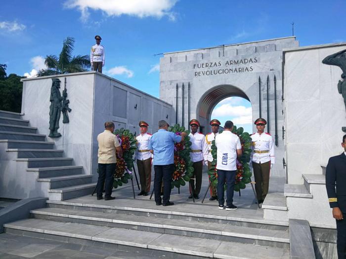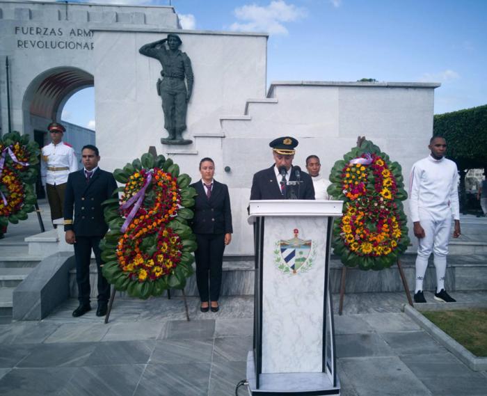 Los miembros del Comité Central del Partido, Luis Antonio Torres Iribar, primer secretario en #LaHabana ; Reinaldo García Zapata, presidente de la Asamblea Provincial del Poder Popular y Osvaldo Vento, presidente del Instituto Nacional de Deportes, Educacion Física y Recreación del Inder, rindieron tributo a las víctimas de esta vil acción, en acto Político realizado en el Panteón de las Fuerzas Armadas Revolucionarias, al cual enviaron ofrendas florales el Primer Secretario del Comité Central del Partido, General de Ejército Raúl Castro Ruz, y el Presidente de los Consejos de Estado y de Ministros Miguel Díaz Canel Bermúdez, además de otra a nombre del pueblo de Cuba.
