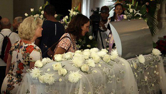 Pioneros de la Escuela Nacional de Ballet custodian el féretro con el cuerpo de la bailarina. El pueblo continúa desfilando; algunos lloran, otros tocan el cristal. Viva Alicia se siente en el Gran Teatro de La Habana.