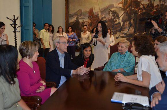 Audrey Azoulay, directora general de la Organización de Naciones Unidas para la Educación, la Ciencia y la Cultura, quien se encuentra de visita oficial en Cuba, fue recibida por el Historiador de la Ciudad de La Habana, Eusebio Leal Spengler.