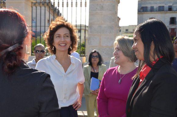 Sobre las excelentes relaciones de cooperación entre la organización internacional y la Oficina del Historiador y acerca de proyectos e iniciativas conjuntas asumidas en el camino de rescate y preservación del patrimonio universal, conversaron Leal Spengler y Azoulay.