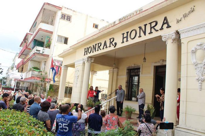 Trabajadores de la oficina del Programa Martiano y de localidades cercanas a la institución se dieron cita con este propósito, hoy cuando nuestro país libra batallas de todo tipo y se reafirma la posición revolucionaria y de cubanía que mantiene nuestro pueblo. Las palabras del Doctor Eduardo Torres Cuevas, director de la Oficina del Programa Martiano, miembro del Consejo de Estado y notable intelectual, expresaba a los presentes: “calificaría estos hechos de bárbaros e ignorantes, solo los bárbaros e ignorantes pueden cometer un acto de estas características, solo quien no sepa y no sienta que es cubano puede agraviar al símbolo más sagrado de nuestra patria.