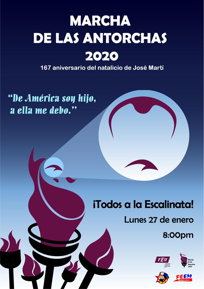 La tradicional Marcha de las Antorchas acontecerá el próximo lunes 27, con salida en la escalinata de la Universidad de La Habana hasta la Fragua Martiana, monumento donde se le rinde tributo al Apóstol de la Independencia cubana.