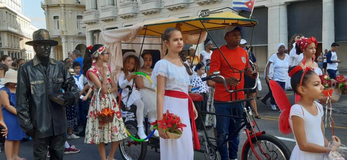 Una representación de los tan populares bicitaxis de La Habana Vieja y de las estatuas vivientes que tanto gustan a los niños les acompañaron en esta memorable jornada.
