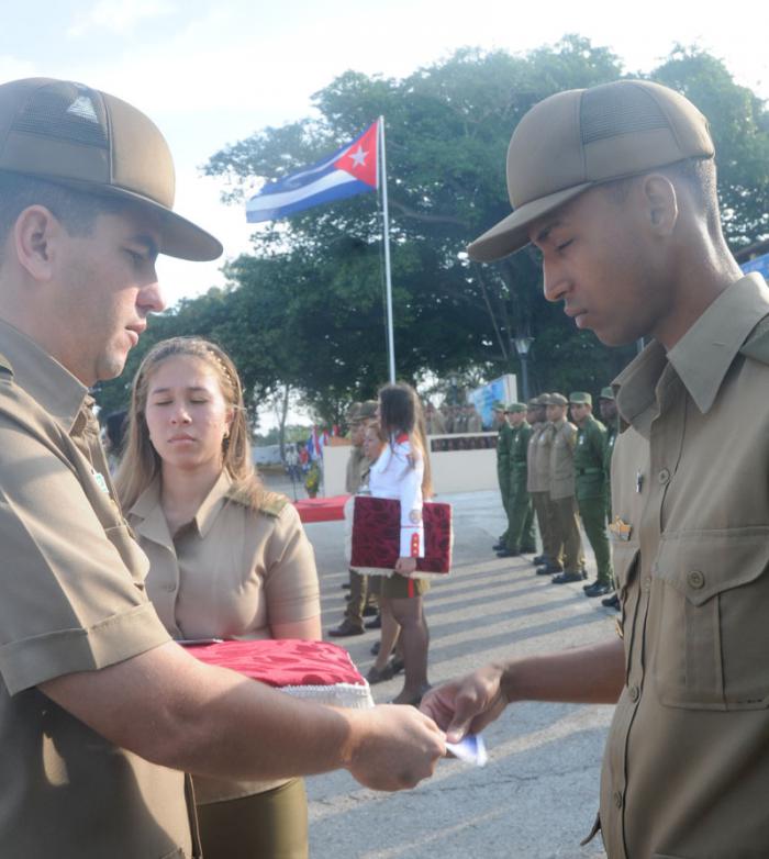 A nombre de quienes todavía no han doblado la curva de los “ta”, el capitán Joel Yut, expresó que los de su generación, en especial quienes visten el verdeolivo, encontrarán en la defensa de la Patria un deber sagrado, que sabrán cumplir a gusto y exitosamente.