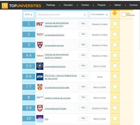 Estados Unidos, con 27 universidades entre las 100 primeras, y el Reino Unido, con 18, son los dos países mejor ubicados en este listado.