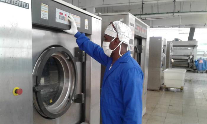 "Por iniciativa propia, teniendo en cuenta el déficit que provoca el bloqueo, comenzamos a asegurar a los trabajadores con medios de protección más concretos, pues estaban manipulando una ropa que requiere un tratamiento más cuidadoso, el cual rompe el procedimiento común. Conversamos con todo el personal en cuanto a la percepción del riesgo y la extrema precaución. Les explicamos que esta lencería solo debe manipularse dentro de la lavadora y no debe sacudirse antes de pasar por el proceso de lavado. Es decir, lo primero fue proteger a través del conocimiento del tipo de ropa a lavar, pues nunca antes tratamos con nasobucos, con batas y otros aditamentos propios del personal de Salud.