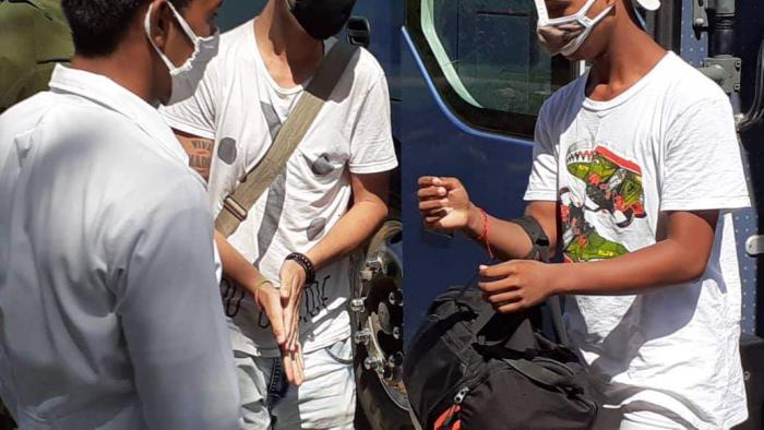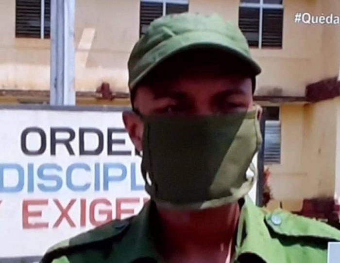 El recluta Giannys Pérez Cobiella me pide un saludo para la familia y los amigos del barrio, y aprovecha para también dar fe del rigor en la observancia de las prácticas que han de cerrar las puertas del CPBNS a coronavirus, garantía de que también después transiten a soldados y lleguen sanos, a las unidades que finalmente les toquen.