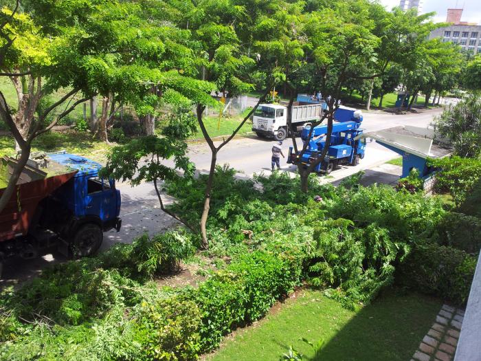 En Cuba es tiempo de tormentas tropicales, ciclones o huracanes y LaHabana se prepara podando árboles, en exceso altos, pero presérvandolos, porque la naturaleza es bella y beneficiosa.