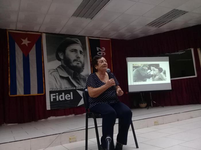 La general Teté, como como es conocida por el pueblo Cuba, ante el auditorio reunido en la sala Alfredo López de la Central Obrera cubana, narró sus vivencias con el Comandante en Jefe Fidel Castro Ruz, durante la guerra de liberación nacional contra la dictadura proimperialistas de Fulgencio Batista en la Sierra Maestra.