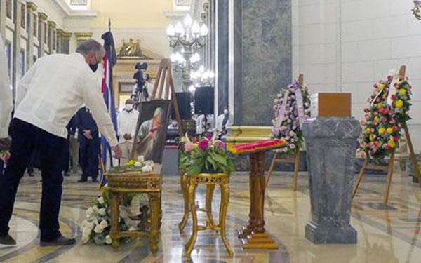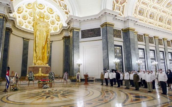 Los dirigentes –junto al primer ministro Manuel Marrero, y el titular del Parlamento, Esteban Lazo– hicieron la última guardia de honor ante la urna que guarda las cenizas del artífice de la restauración de La Habana Vieja, durante las honras fúnebres llevadas a cabo en el Salón de los Pasos Perdidos del Capitolio.