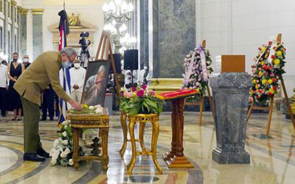 El Primer Secretario del Comité Central del Partido Comunista de Cuba, Raúl Castro, y el Presidente Miguel Díaz-Canel rindieron homenaje hoy al historiador de La Habana, Eusebio Leal, fallecido en julio pasado.