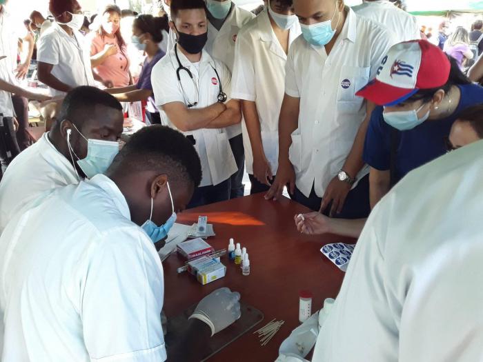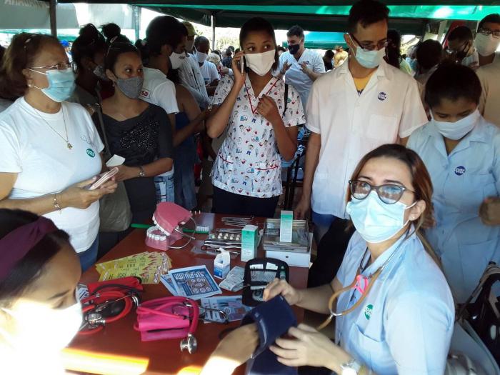 Toma de la presión arterial, pruebas para comprobar cómo está el azúcar, el grupo y factor sanguíneo, entre otras actividades, además de la realización de pruebas de conocimientos, llevaron a muchos a acudir a las carpas de la Universidad de Ciencias Médicas de La Habana.