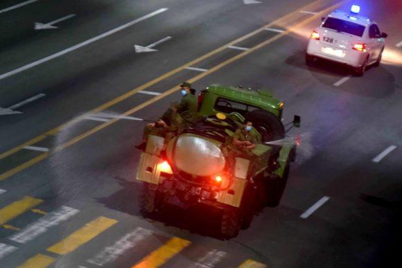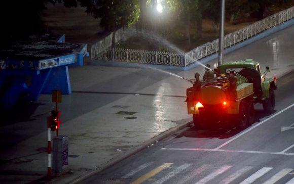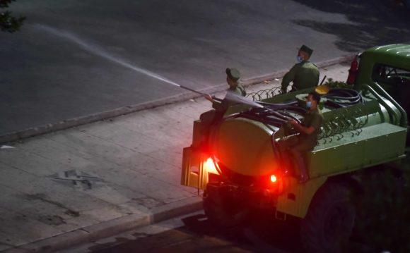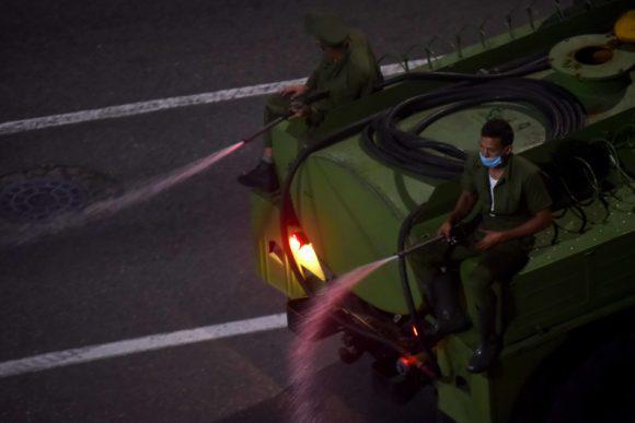 El lente de la fotorreportera de la Agencia Cubana de Noticias, Omara García Mederos, captó la desinfección con agua clorada de la céntrica avenida 23, una acción efectiva para inactivar los virus en las superficies.
