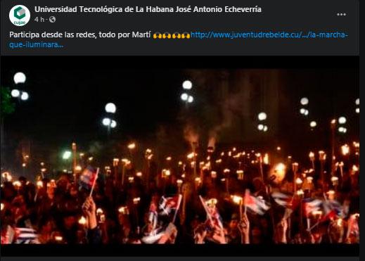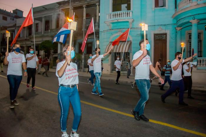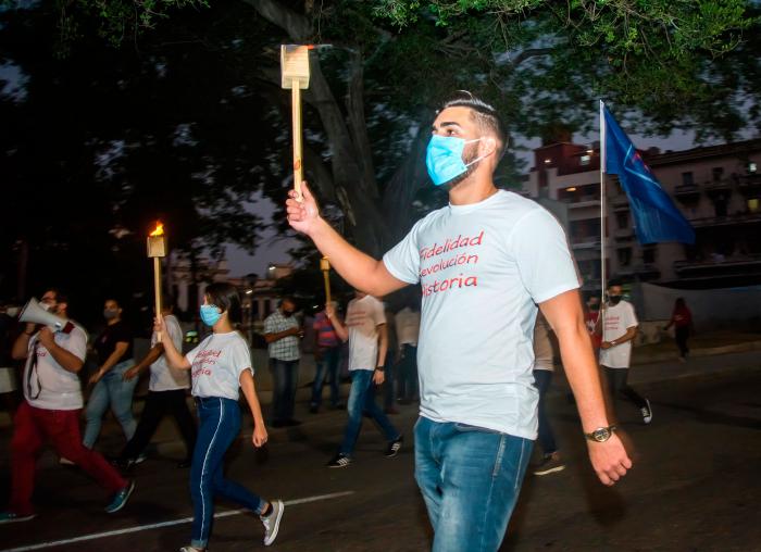 Hoy serán menos las antorchas encendidas en la escalinata, pero ello no significa que toda Cuba no prenda la llama de dignidad y reafirmación desde los centros de la salud, la producción, la docencia, el arte o la defensa y en cada escenario donde se libra la batalla en el enfrentamiento a la pandemia, afirmó José Ángel Fernández Castañeda, presidente de la Federación Estudiantil Universitaria (FEU), minutos antes de comenzar la reedición simbólica de la Marcha de las Antorchas.