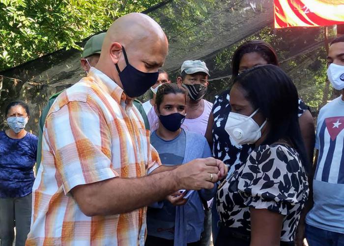 Siul Enrique Bernal, primer secretario del Partido en San Miguel del Padrón explicó al máximo dirigente de los CDR, cuanto se hace en la localidad como contribución a la campaña #CultivaTuPedacito.