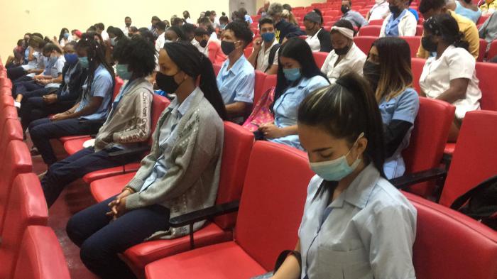 El miembro del Buró Nacional de la organización juvenil, Yosmel Duany Alvarez, resaltó en las palabras centrales del acto, la labor abnegada de los futuros enfermeros y enfermeras en la zona roja de los hospitales COVID-19, los centros de aislamiento, la pesquisa comunitaria, las donaciones de sangre y la atención a los grupos vulnerables.
