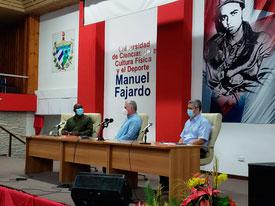 Díaz-Canel sostuvo también hoy un encuentro con estudiantes de la Universidad de Ciencias de la Cultura Física y el Deporte, Manuel Fajardo, según reporta la cuenta de Twitter de la Presidencia de Cuba.