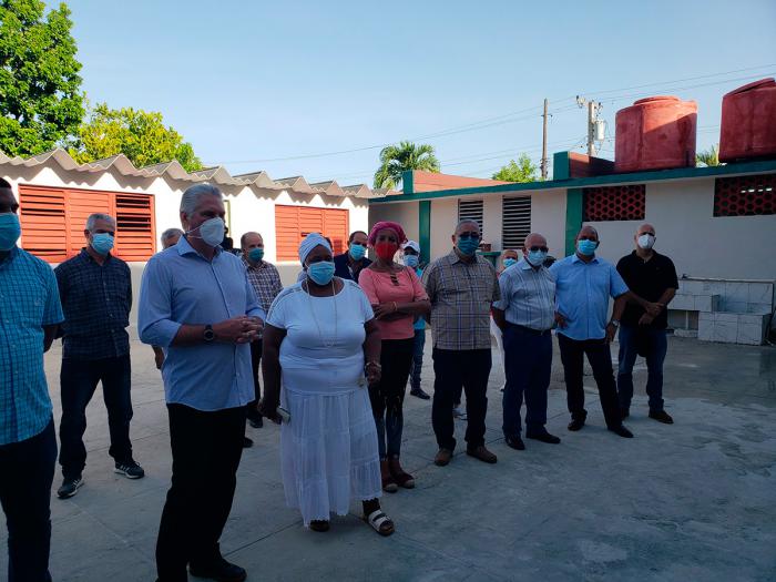 En su recorrido por La Güinera, Díaz-Canel conversa con el pueblo y aprecia las acciones realizadas en la panadería "El Modelo", la Casa Comunitaria, el macrovertedero Segundo Triángulo, el puente de Avenida del Rosario, la calle Rossevelt recién asfaltada y en la Calzada La Güinera, señala la Presidencia en Twitter.