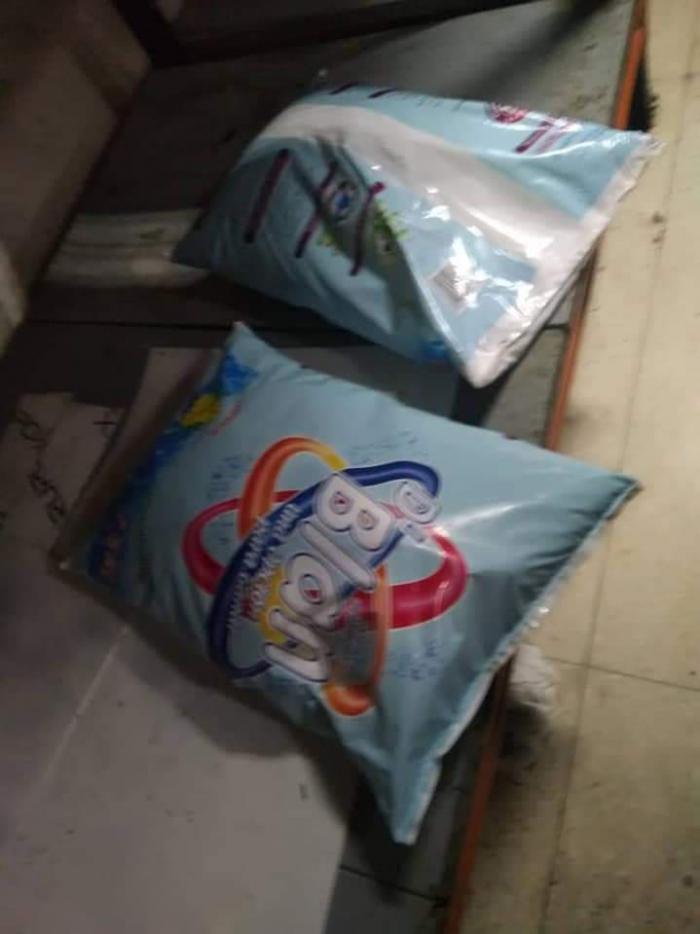 En la bodega 1021, de la propia localidad sanmiguelina, se detectaron 110 libras de arroz sin respaldo documental y 80 unidades de almohadillas sanitarias, se procedió al decomiso de dichos productos.