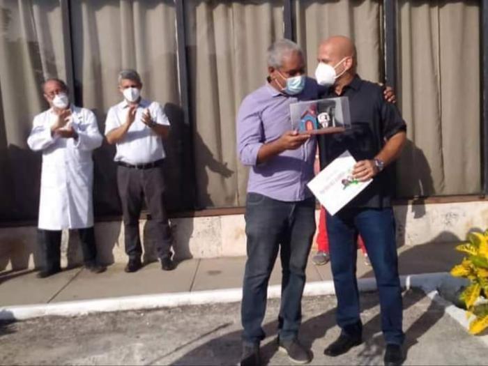 El miembro del Comité Central del Partido Comunista de Cuba y Viceprimer ministro del Gobierno, Jorge Luis Perdomo Di-Lella, asistió al acto efectuado cumpliéndose con las normas de salud por la COVID-19, donde el Héroe de la República de Cuba, Gerardo Hernández Nordelo, integrante del Consejo de Estado y coordinador nacional de los CDR entregó el Premio del Barrio al doctor Eduardo Ojito Mada, director general del CIM.