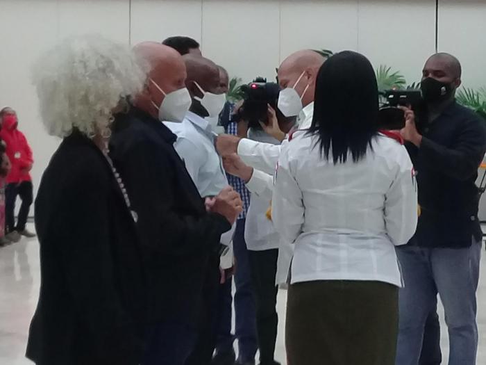 Durante el acto, Roberto Morales Ojeda, integrante del Buró Político y secretario de Organización y Política de Cuadros, y el Héroe de la República de Cuba, Gerardo Hernández Nordelo, impusieron 10 medallas Por la Defensa de la Patria y la Unidad del Barrio a cederistas que enfrentan hechos relevantes en defensa de la Revolución.