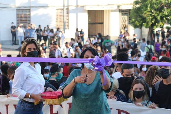 El ascenso de la escalinata comenzó con el corte de la cinta por la Rectora de la Universidad de La Habana, la doctora en Ciencias Miriam Nicado García.