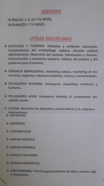 En la sede de la Federación de Mujeres Cubana (FMC), ubicada en calle 2 no. 509 entre 21 y 23, en el Vedado, las personas de los 15 territorios de La Habana podrán adquirir conocimientos sobre idioma inglés y francés, masaje corporal, gastronomía, peluquería, hotelería, gerencia empresarial, contabilidad, y artesanía entre otras especialidades.