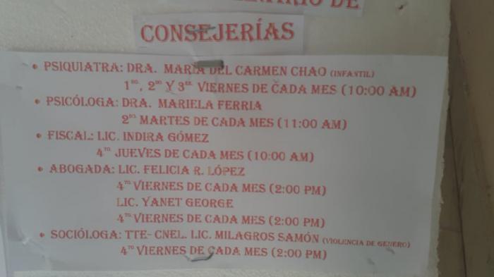 La sede central de las mujeres y la familia placeña también ofrece servicios de consejerías, para lo cual cuenta con un equipo multidisciplinario especializado en Derecho, Psicología, Psiquiatría y Sociología.