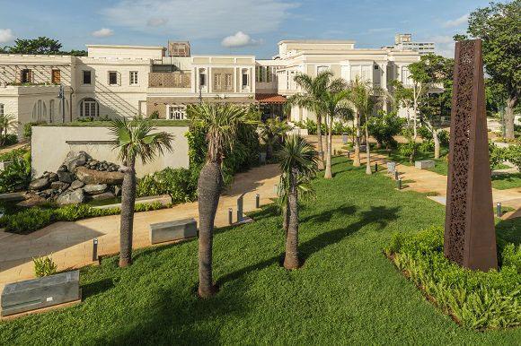 De las desembocaduras de los ríos La Plata y Carpintero vinieron las rocas que dan forma al salto de agua que divide a los jardines. Más de 161 especies y 11 000 plantas traídas de todo el país, algunas de ellas en peligro de extinción, y muchas de ellas vinculadas con la historia de la Revolución, los países amigos y aquellos proyectos agroecológicos que Fidel emprendió en sus últimos años, forman los exteriores de la edificación.