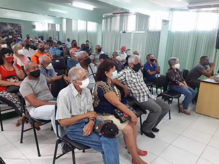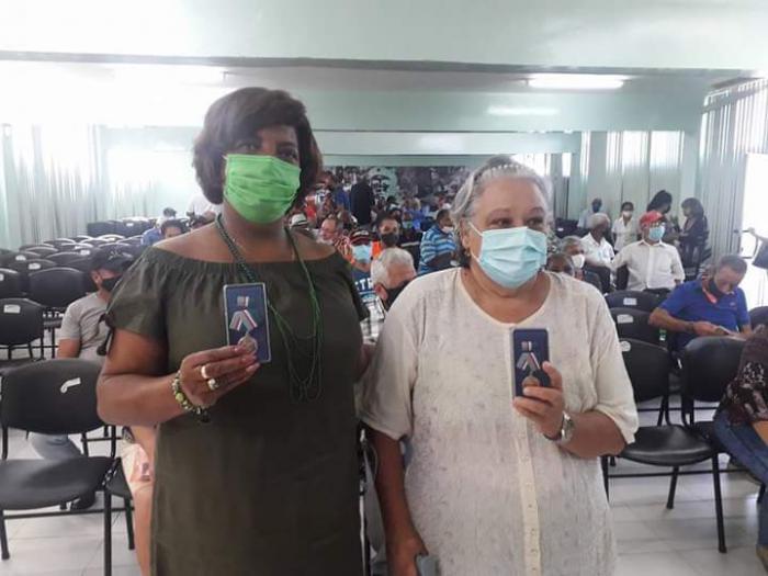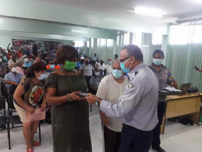 En el Círculo Social Obrero Marcelo Salado se realizó el acto, donde el Teniente Coronel Orlando Ramírez Pérez, jefe de la Policía Nacional Revolucionaria (PNR) de la localidad, condecoró a los pensionados.