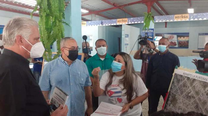 La primera secretaria del Comité Municipal del Partido, Tamara Garrido González, expuso las acciones de reparación ejecutadas en el supermercado "La Purísima", que además de las mercancías normadas por la libreta de abastecimientos expende productos elaborados por las minindustrias del territorio.
