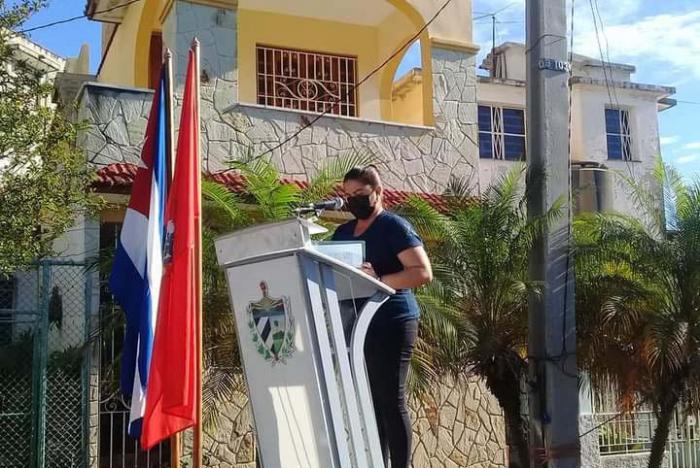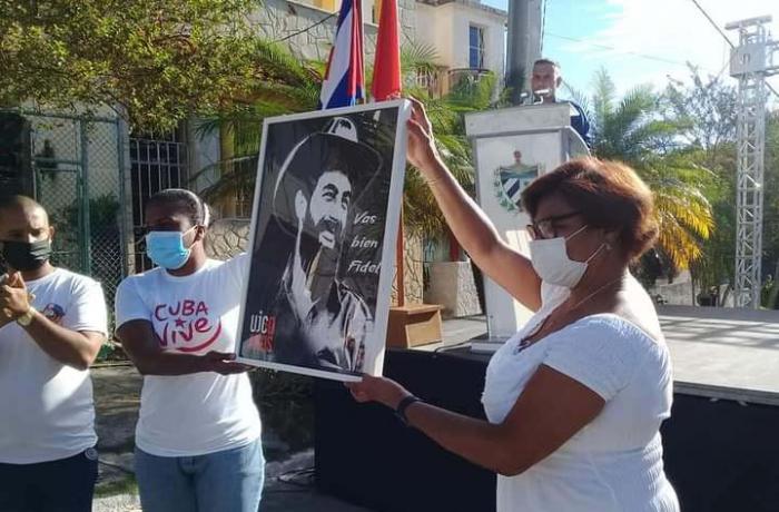 La primera secretaria del Partido en el municipio de 10 de Octubre, Aymara Carrazana Guzmán, al pronunciar las palabras centrales del acto destacó la fecunda vida de Camilo, sus servicios prestados a la Patria, enfatizando que su legado está presente en los jóvenes al pie del torno, al pie de un horno de fundición, en los laboratorios, patentizando la profunda convicción de que en el pueblo hay muchos Camilos.